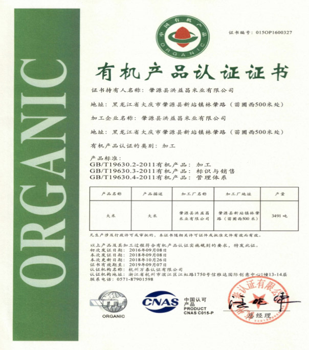 有機大米基地生產(chǎn)有機證書