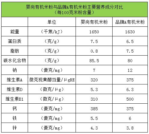 從營養(yǎng)成分表來看,我們將嬰尚有機米粉與品牌A有機米粉進行對比,發(fā)現(xiàn)嬰尚原味有機米粉蛋白質(zhì)含量更高,更好地滿足寶寶快速生長發(fā)育的需求;同時鈉含量更低,減少寶寶代謝負(fù)擔(dān);鈣、鋅含量也更占優(yōu)勢,更好的補充微量元素,給寶寶更多的呵護!