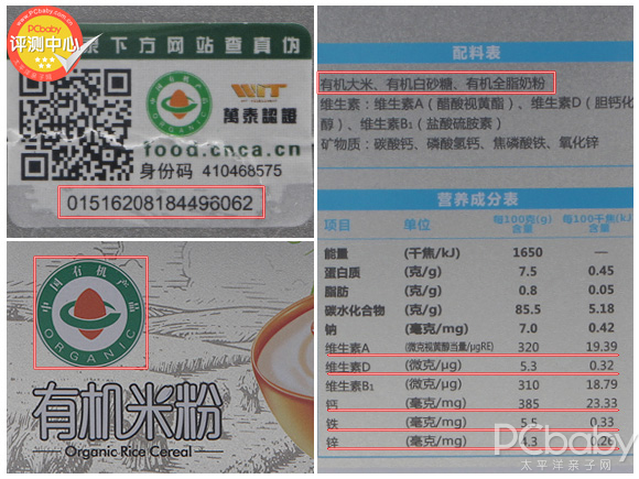 嬰尚有機米粉外盒上有有機產(chǎn)品標(biāo)識與有機防偽碼的粘條,盒身多處標(biāo)有“中國有機產(chǎn)品”字樣。且配料表中也標(biāo)注出了含有有機大米、有機白砂糖、有機全脂奶粉等有機成分。