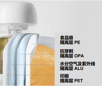 嬰尚果泥采用四層鎖鮮包裝(食品級隔離層 PE、抗穿刺隔離層 OPA、水分空氣及紫外線隔離層ALU以及印刷隔離層 PET),杜絕了氧氣和細(xì)菌,同時(shí)采用巴氏殺菌工藝,不添加防腐劑也能保鮮,最大程度保留了原材料的營養(yǎng)。